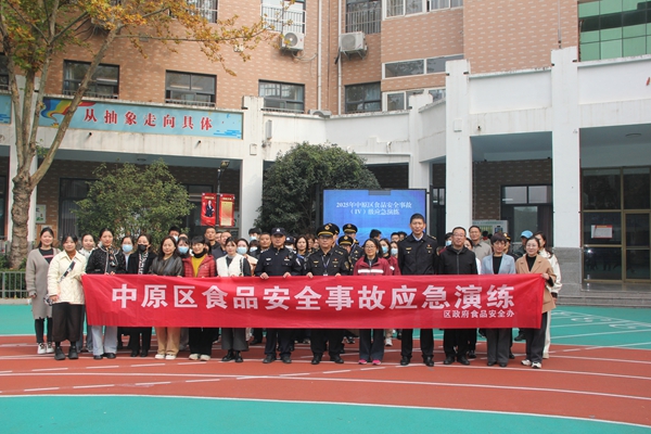 区委宣传部、区卫健委、区教育局、区市场监管局、中原公安分局、区农业农村局、航海西路街道办事处等单位参加演练。辖区20家学校代表现场观摩。